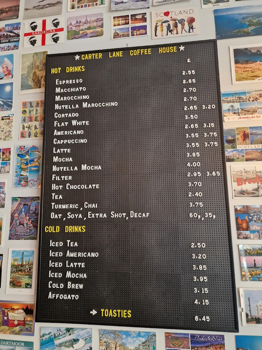 What sets Carter Lane Coffee House apart from other cafés in the area is its commitment to quality. The menu might be simple, but it’s crafted with care, ensuring that every item is made with the finest ingredients and the utmost attention to detail. Whether you're stopping by for a quick caffeine fix or enjoying a leisurely afternoon, this charming coffee house has something to offer every coffee lover.